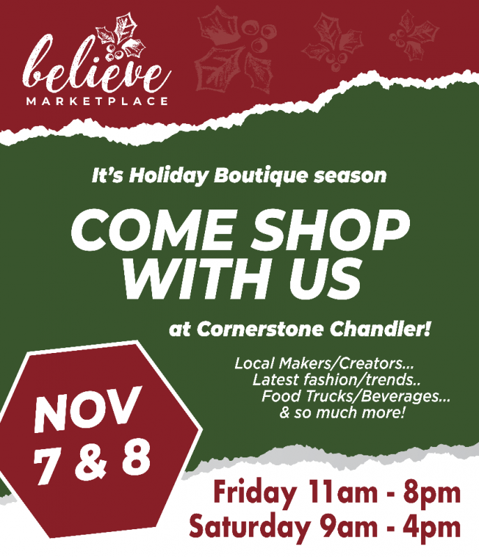 Join us at Believe Marketplace, a festive holiday boutique supporting our women’s ministry!